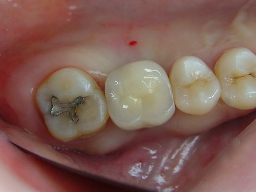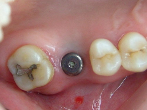 上顎後牙植牙 三個月後 牙肉很漂亮 紅點為上麻藥 之入針點 ...
