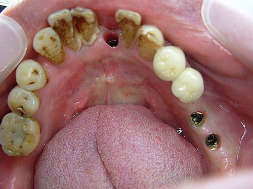 植牙手術後三個月 .... 癒合良好 .... 但牙齒刷不乾淨 牙結石多 ...